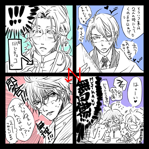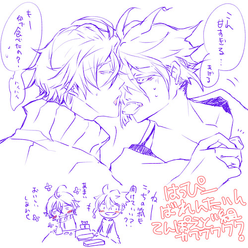 KAITOおめでとうなのに水麿。表記ってどっちがイイのかよく分からん。てんぽえど組って言えば良いのか?まぁバレンタインラクガキだよ。政府組?好きでくっだらないネタばっか考えてしまう。とりあえず吐出し。ゲロリ。あとね、もう1つネタとその後のラクガキ描いたの。もうちょっと直したいから明日にする。ああああ、ごめん KAITO。動画ぁあああ。
