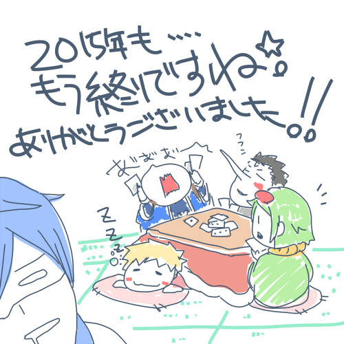 12月ですね遅メリクリ。久しぶりにパソりんです。ッターン!最近調子悪いので確実に今年中にボカロうp出来ないネ。10月予定とはなんだったのか。メモリ増やして起動してれば良いのだけど起動するまでと突然のカイト起動に死亡する(笑。そうそう引き篭もり姫様グミ子無事にV3で歌えるようになりました。サービス終了前で良かったぜ。フゥ。まぁ結局今年も引き篭もりだけどね!ゾラっ子もな!うへへ。間に合ったら恒例のコタツ絵描きたいね。あ、来年用に猿絵という事でペタリ。まだ途中。ていうかペンタブ寒くてやる気マイナスる。