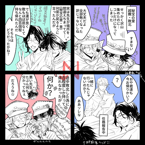 もはやいつの事な秘宝イベの、完成。水かくの楽しかった。色々描きたいのいっぱいあるけど追いついてないのでユックリいこうじゃないか。特命組いっぱい描きたいなー。もうちょと慣れてササッと描きたい。相変わらず顔七変化だから。グフゥ。